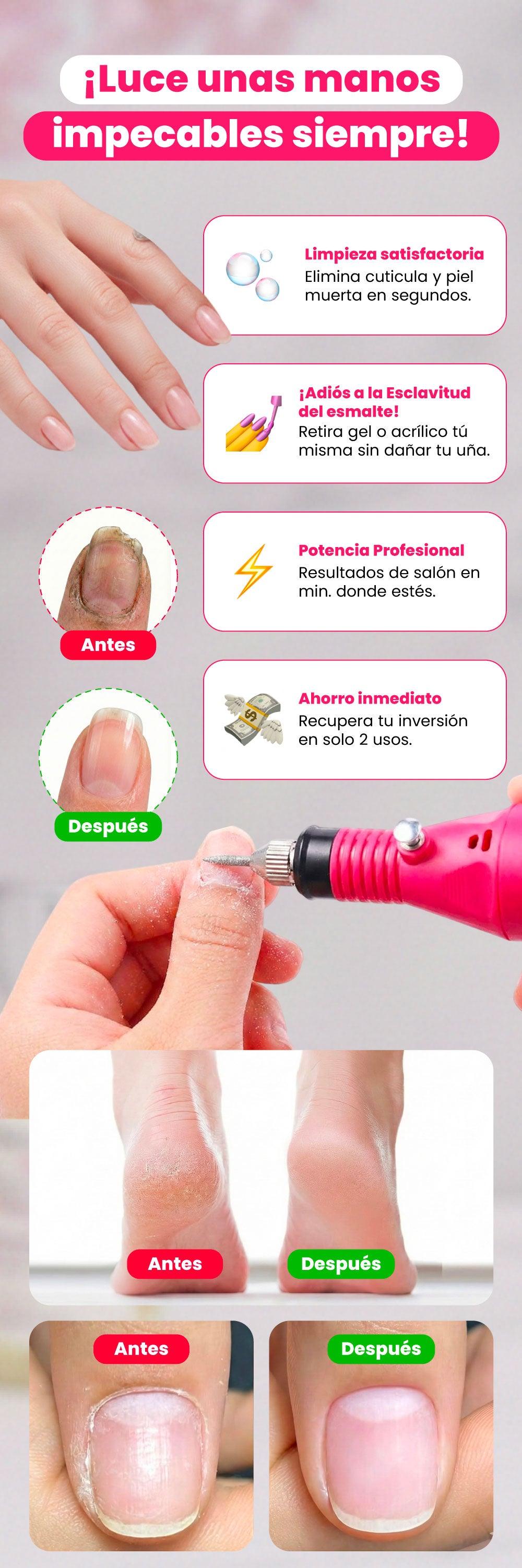 Elimina piel muerta y cutículas rebeldes sin riesgo de cortes.